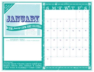 It turns out that I’m not the only one that is winter produce-challenged, so to help us sad souls, Cameron of Cottage Industrialist has designed a fabulous series of free, printable and completely awesome calendars that list the veggies-of-the-month with coordinating printable recipes using said veggies cooked up by Heather over at Home Ec 101.  How cool is that?